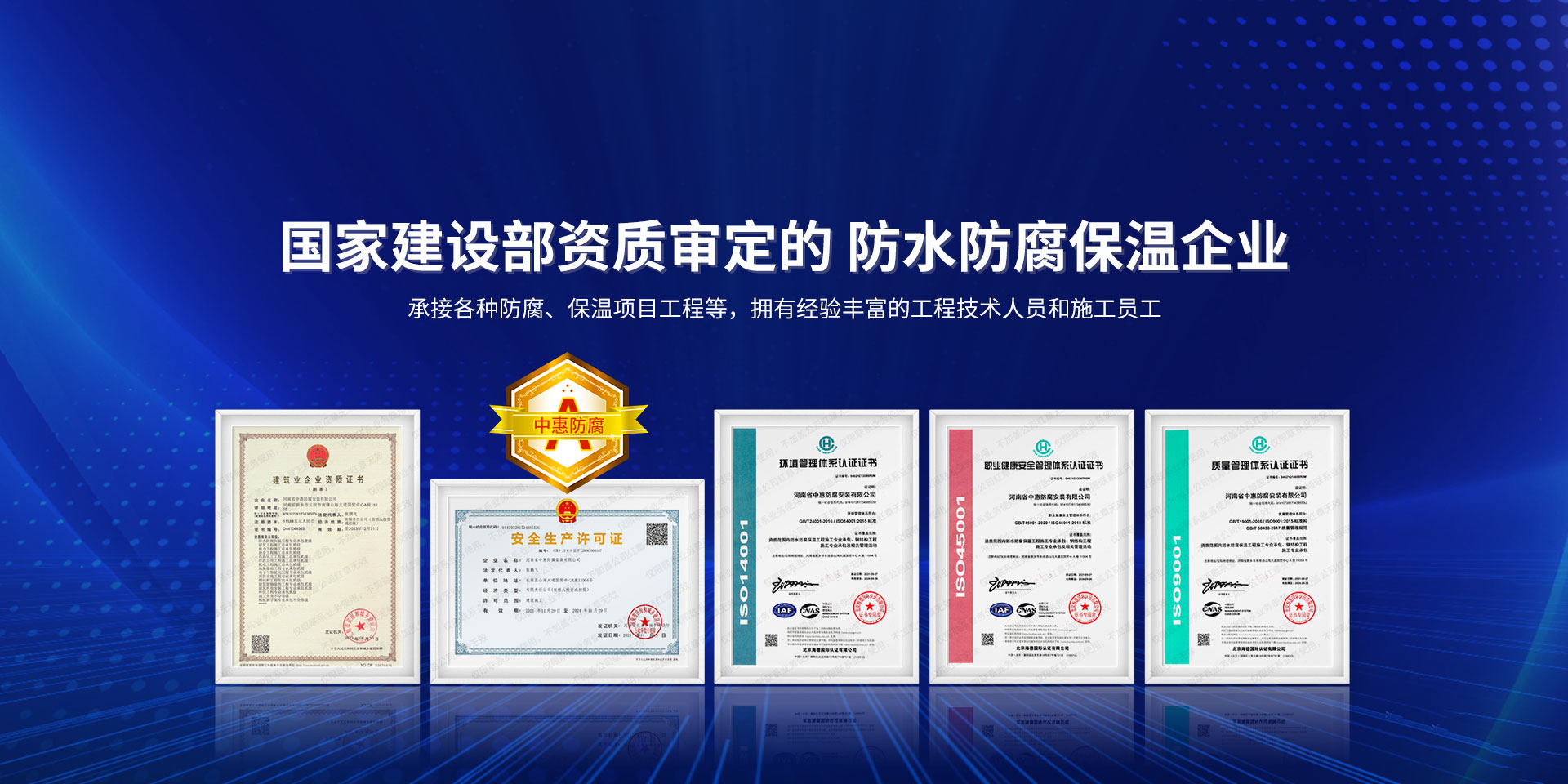 公司經(jīng)營范圍:防水防腐保溫工程;消防設(shè)施工程;建筑裝修裝飾工程;建筑機(jī)電安裝工程;電力工程;建筑工程;石油化工工程;工業(yè)清洗工程;油罐清洗工程;鋼結(jié)構(gòu)工程;環(huán)保工程;模板腳手架工程;電纜防火封堵、防污閃噴涂、外墻外保溫工程;各類施工勞務(wù)作業(yè);設(shè)備維修、船舶鉚焊、涂裝;電力工程材料、建材、防水材料、防火材料、防腐保溫材料銷售,并相繼通過了GB/T19001-2008idtISO9001:2008GB/T50430-2007質(zhì)量管理體系認(rèn)證證書。GB/T24001-2004idtISO14001:2004環(huán)境管理體系認(rèn)證證書。GB/T28001-2011idtOHSAS18001:2007職業(yè)健康安全管理體系認(rèn)證證書。公司是中國防腐蝕于防護(hù)協(xié)會、中國施工企業(yè)管理協(xié)會、電力協(xié)會和中國鋼結(jié)構(gòu)防水協(xié)會會員單位。 公司的經(jīng)營業(yè)務(wù)涵蓋了石油、化工、電力、冶金、煤炭、船舶、國防、燃?xì)狻⑺h(huán)保、交通運輸、航空及國防軍工和輕紡市政等行業(yè)的防腐保溫絕熱設(shè)備。鋼結(jié)構(gòu)安裝、防火、防水、金屬噴鍍、聚脲噴繪、陰極保護(hù)、防滲透堵漏、玻璃鋼及各種磚版材料襯里、橡膠襯里、煙氣硫和耐酸溶劑腐蝕等工程施工。公司連續(xù)十年榮獲“省市先進(jìn)施工企業(yè)”“安全生產(chǎn)先進(jìn)單位”“重合同,守信用企業(yè)”和“AA***資質(zhì)企業(yè)”的稱號。2000年被命名為市級文明單位,2002年被國家工商行政管理局命名為“重合同,守信用的企業(yè)”、被中國工業(yè)防腐蝕技術(shù)協(xié)會命名為“防腐蝕企業(yè),能源節(jié)約及環(huán)境保護(hù)領(lǐng)域有豐富的經(jīng)驗和***的業(yè)績。工程一次交驗合格率100%。其中攀枝花鋼鐵公司煉鐵廠四號高爐及熱風(fēng)爐防腐工程、上海寶鋼公司煤氣柜防腐工程、撫順石油一廠裝置防腐項目、齊魯石化公司稀烴廠高塔防腐工程、吉林化學(xué)工業(yè)公司煉油廠油罐防腐工程、天津石化熱電廠六號爐頂棚聯(lián)絡(luò)管保溫工程、大慶油田(太倉)力神泵業(yè)工程、中國化學(xué)工程第十一建設(shè)工程、中原油田勘探局工程、中國石化銷售有限公司華北分部、魯皖輸油管道工程、貴州開磷息烽合成氨工程、陜西黃陵煤化工程、中國石油天然氣西部管道塔里木輸油工程、邯鋼集團(tuán)邯寶鋼鐵公司煉鐵工程、德州供電工程、吉寶(南通)船廠工程,偃師華潤熱力工程、鄭州熱力總公司。 河南省中惠防腐安裝有限公司愿以豐富的施工經(jīng)驗,***的技術(shù),***的設(shè)備,***的管理,***的服務(wù),竭誠為國內(nèi)外廣大的用戶提供***滿意、******的工程作品。 我公司愿與國內(nèi)外同仁一道,團(tuán)結(jié)協(xié)作,共同推進(jìn)防腐蝕行業(yè)發(fā)展! 公司地址:河南省長垣縣建設(shè)路北段360號 固定電話:0373-8866488 郵編:453400 網(wǎng)址:http://www_zhff_com_cn.znssxt.com